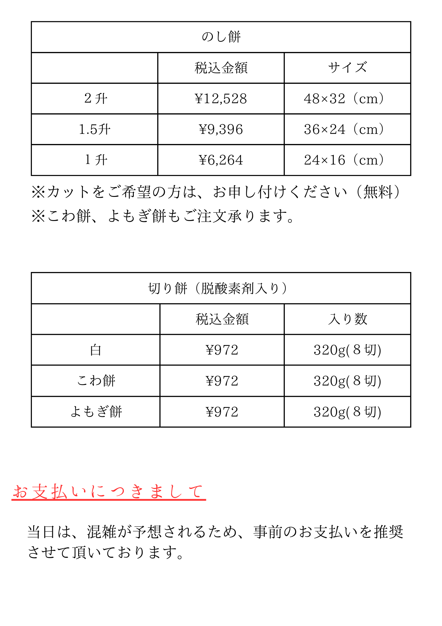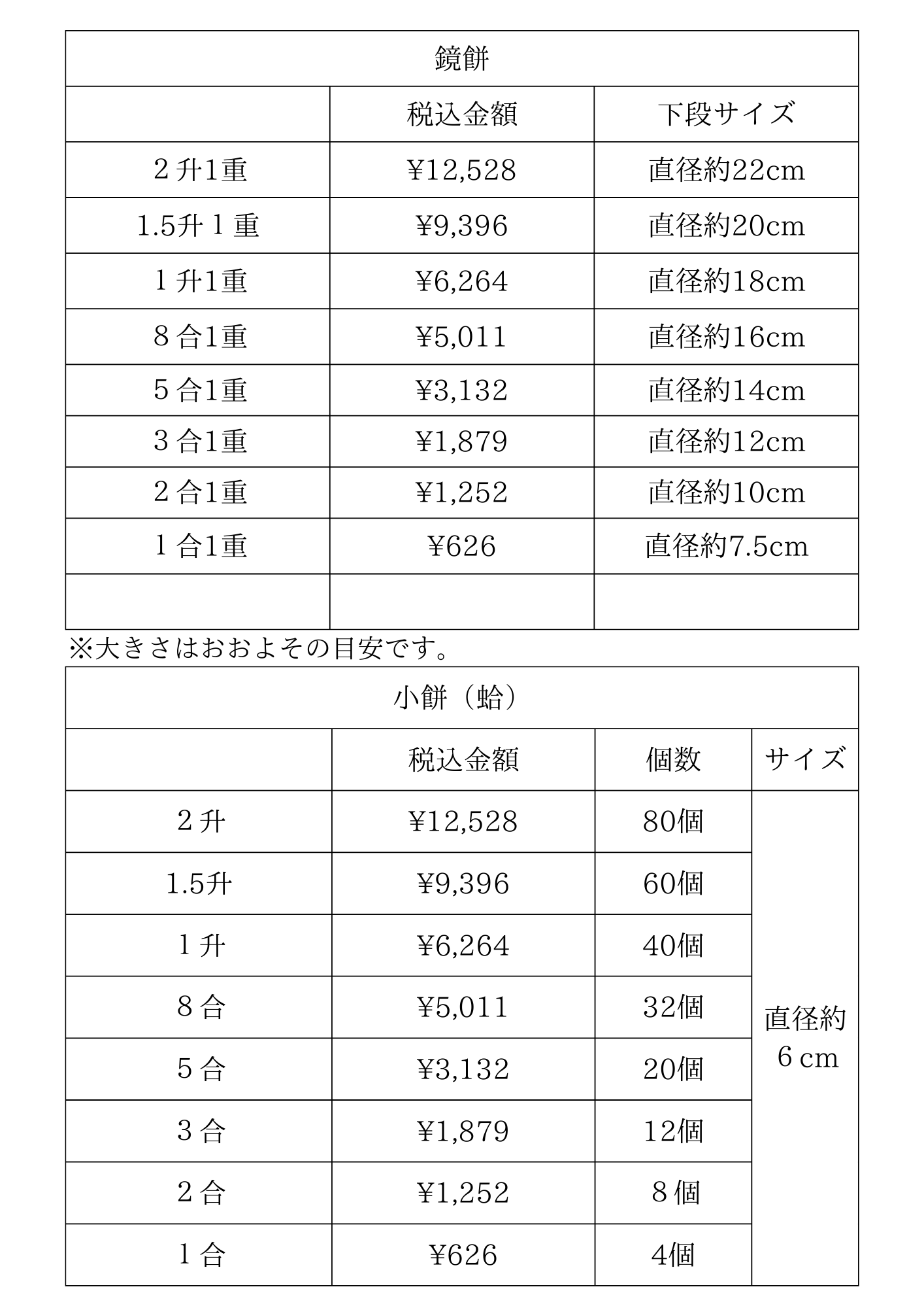 | 一升餅(化粧箱・熨斗紙付き) | 6000円(税込6480円) |